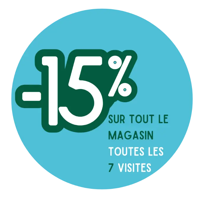 Nous remercions nos meilleurs clients ! Après 7 visites, bénéficiez automatiquement de -15% sur l’ensemble du magasin.