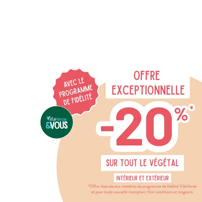 profitez de -20 % sur tout le végétal intérieur et extérieur et laissez le printemps s’épanouir chez vous.